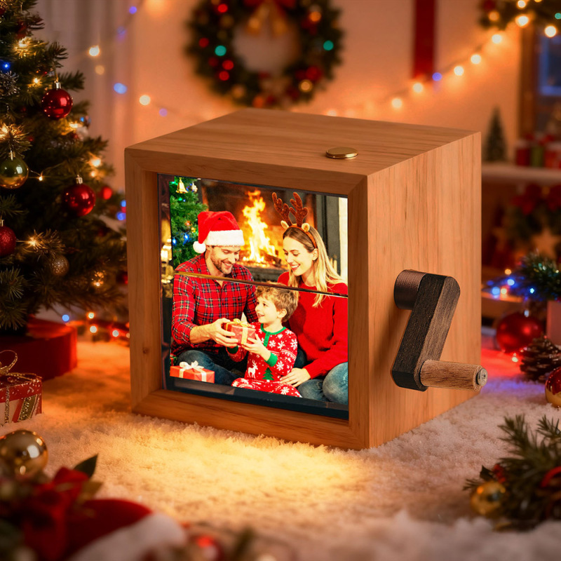 Benutzerdefinierter Foto-flipbook-rahmen, Animationsmaschine, Mechanische Handkurbel-flipbook-box, Fotoalbum Mit Hellem Schwarzem Walnussholz, Jubiläumsgeschenke