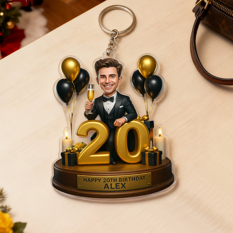 Geburtstagsgeschenk: Personalisierter Foto-karikatur-schlüsselanhänger Aus Acryl Mit 3d-optik (2d-druck)