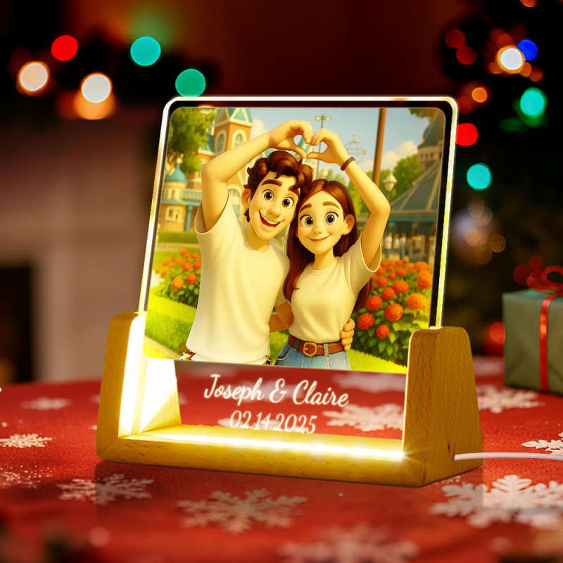 Personalisierte Led-acryl-nachtleuchte Mit Foto Im Cartoon-stil – Weihnachtsgeschenk, Erinnerungsgeschenk Für Paare