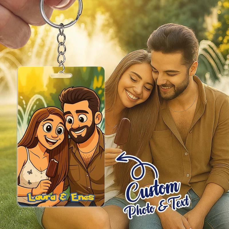 Personalisierter Paar-schlüsselanhänger Im Anime-stil, Perfektes Geschenk Für Paare, Personalisiertes Cartoon-geschenk Mit Foto Und Text, Acryl-schlüsselanhänger