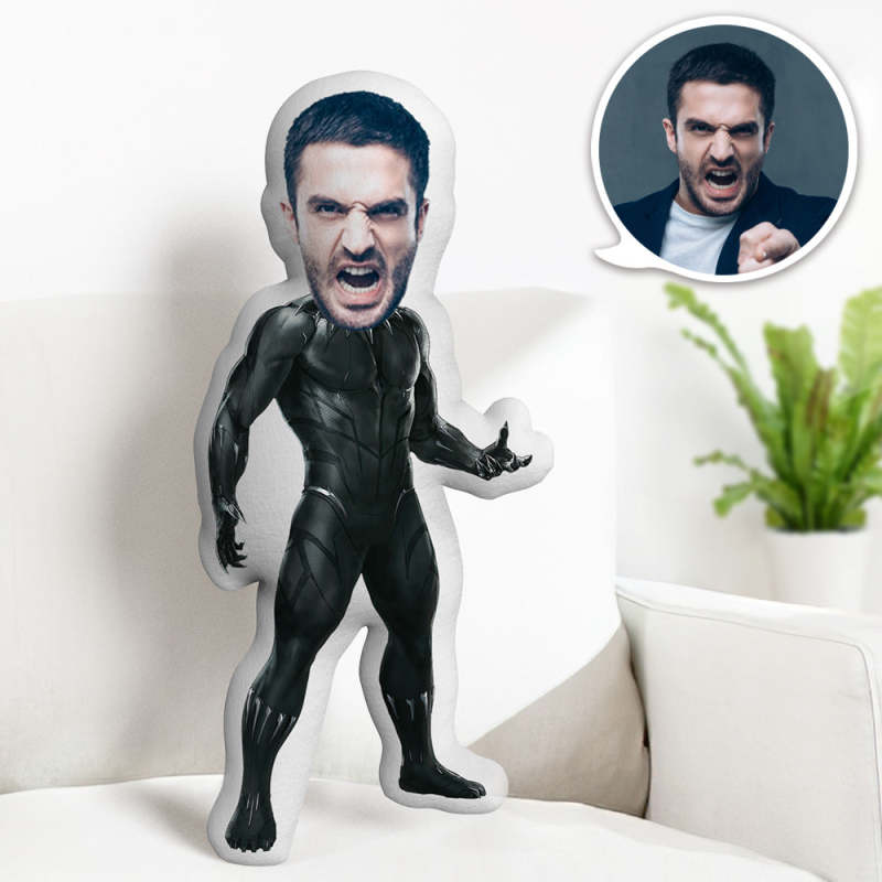 Kundenspezifisches Schwarzes Panther-puppen-personalisiertes Gesichts-kissen-kundenspezifisches Foto-kissen-geschenk Für Ihn