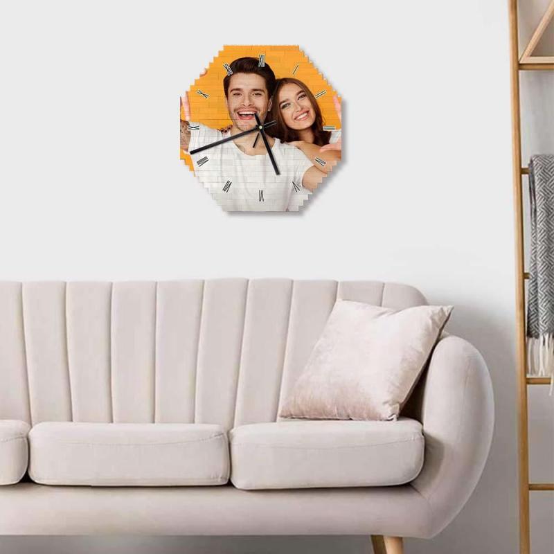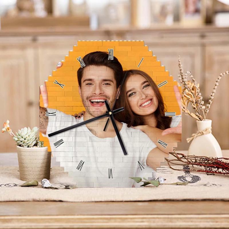 Kundenspezifische Baustein-wanduhr-persönlichkeits-puzzle-kundenspezifische Foto-zeiger-ziegelstein-uhr