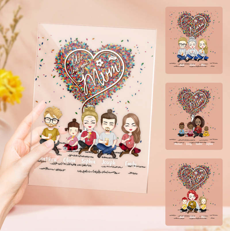 Benutzerdefinierte Clipart Personalisierte Mutter Und Kinder Cartoon Plaque Lampe Muttertagsgeschenke