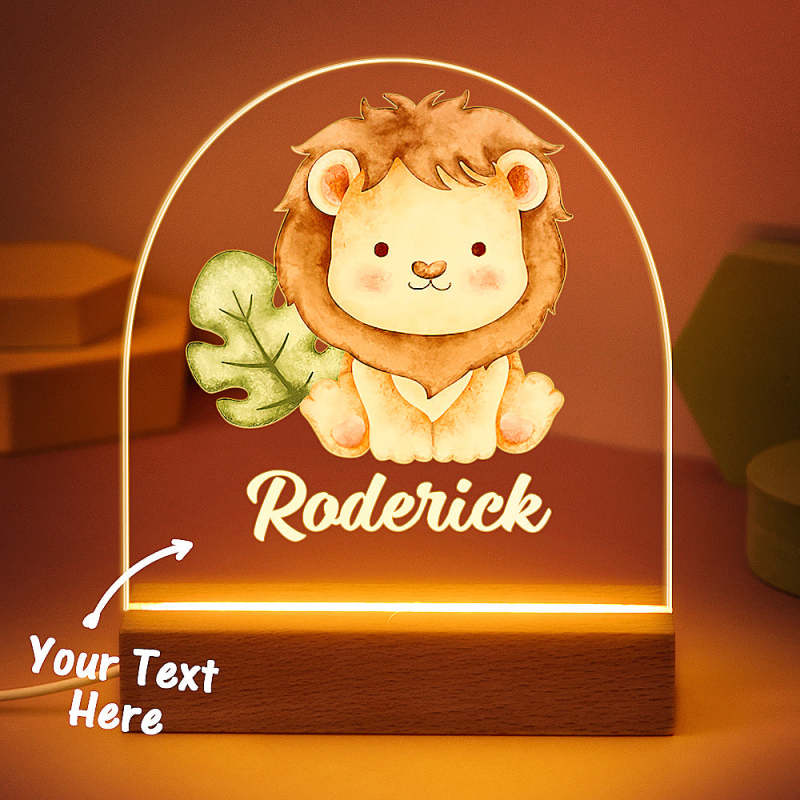 Kundenspezifisches Buntes Nachtlicht Mit Kleinem Löwe-personalisiertem Neugeborenem Baby-geschenk