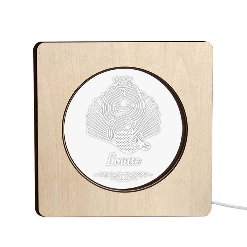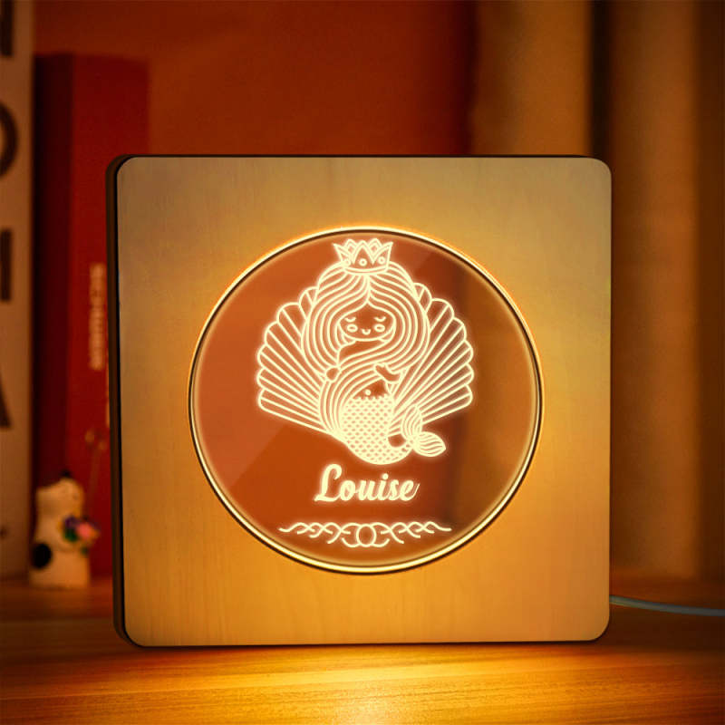 Benutzerdefinierte Gravierte Name Nachtlicht Personalisierte Meerjungfrau Holzrahmen Lampe Geschenk