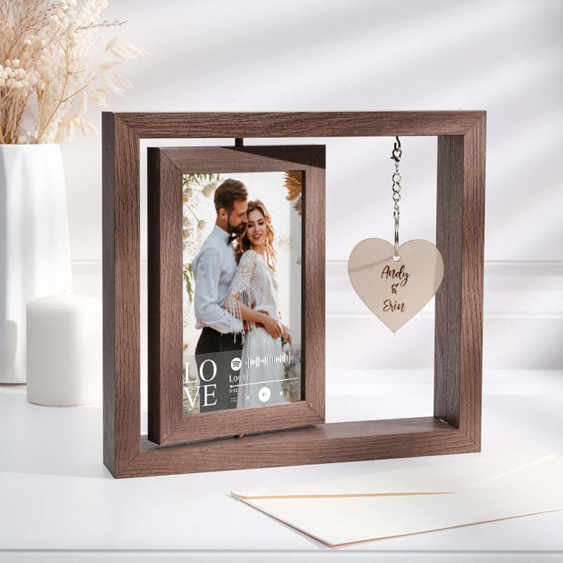 Individuell Gravierte, Drehbare, Schwebende Bilderrahmen, Doppelseitig, Für Ein Personalisiertes Verlobungsgeschenk Für Paare