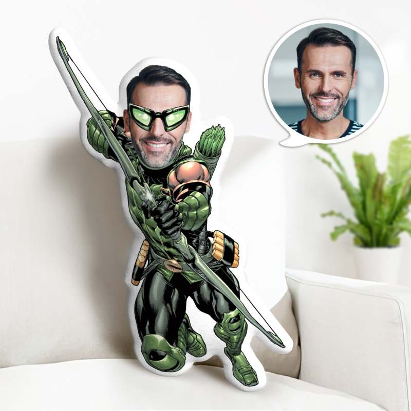 Kundenspezifisches Grünes Pfeil-puppen-kundenspezifisches Gesichts-kissen-personalisiertes Foto-kissen-superheld-geschenke