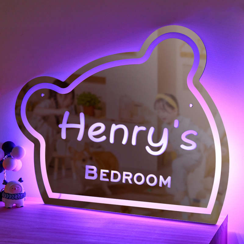 Custom Name Mirror Light Funny Children's Bedroom Bear Gift