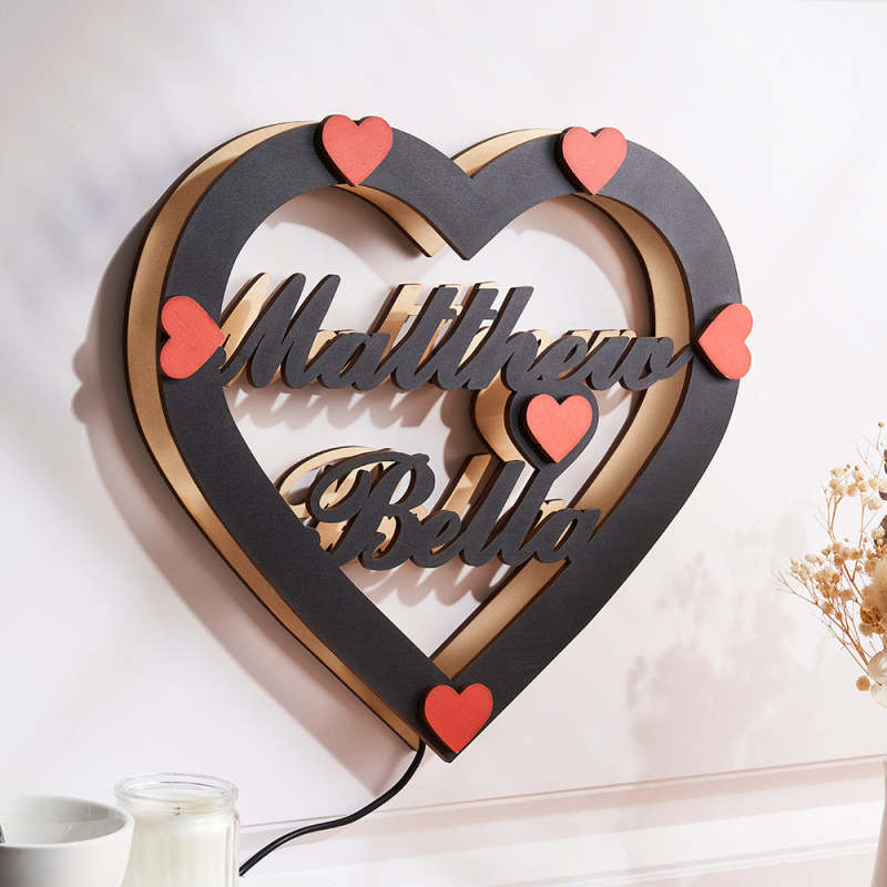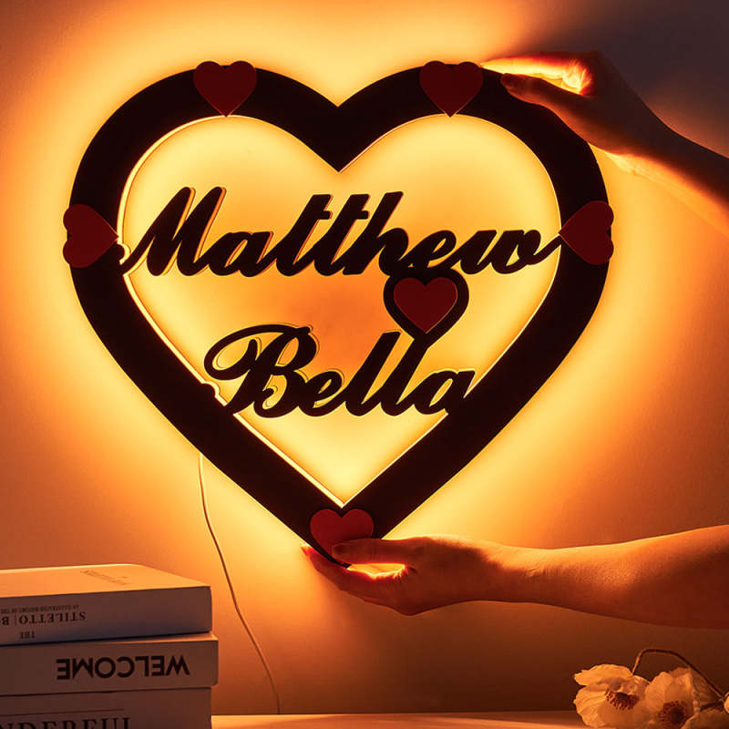 Individueller Name Rotes Herz Nachtlicht Romantische Wandbehang Led-lichtgeschenke Für Paare