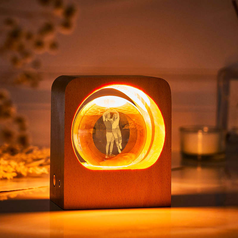 Personalisiertes Foto-kristallkugel-nachtlicht, Personalisiertes Holzlampen-dekor, Erinnerungsgeschenk