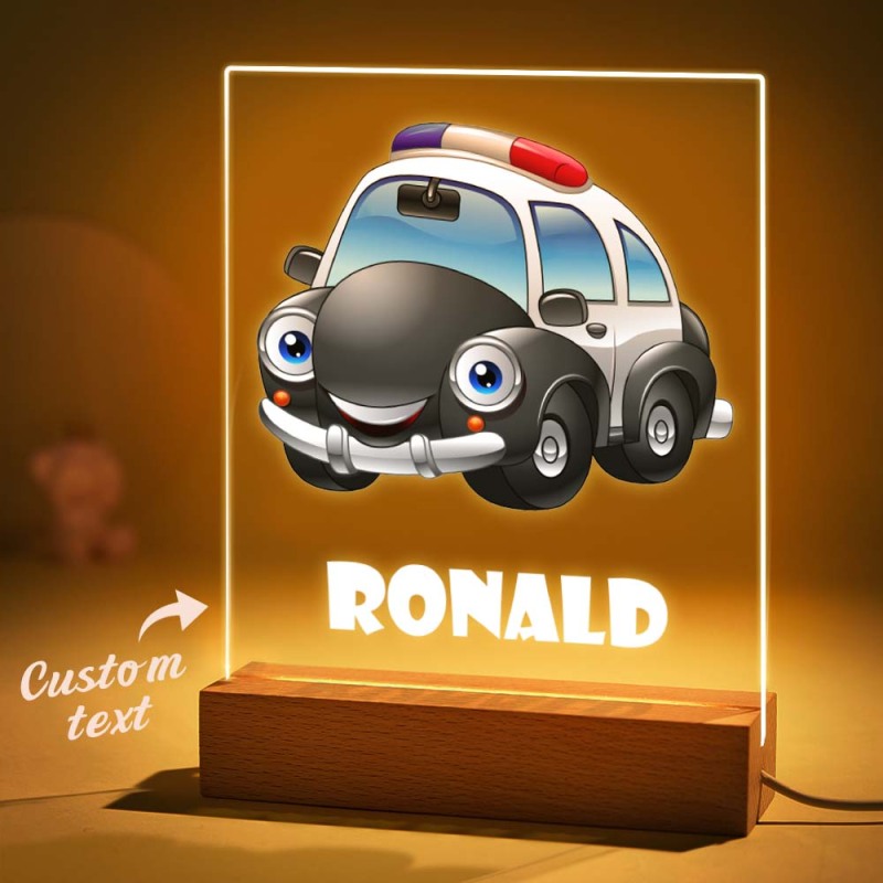Kundenspezifisches Polizeiauto-nachtlampen-jungen-acryl-led-licht Für Kind Mit Personalisiertem Namen