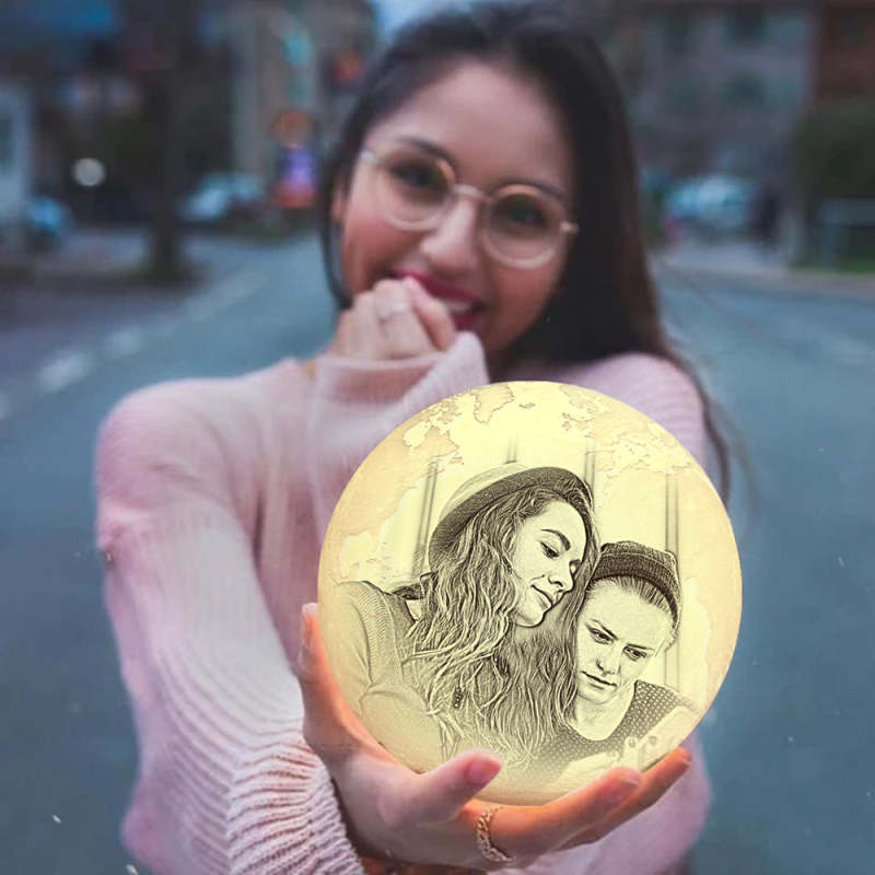 Glückliche Freund Foto Gravur 3D Druck Earth Light Lamp Earth - Fernbedienung 16 Farben (10-20cm)