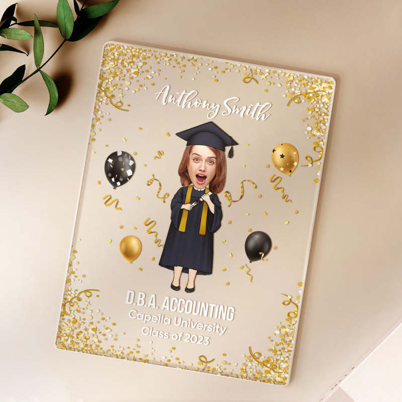 Geschenk Zur Abschlussfeier, Individuelles Foto, Anerkennung Der Abschlussfeier, Acryl-plakette, Lampe Personalisiert Ihren Namen, Ihr Diplom Und Ihre Schule
