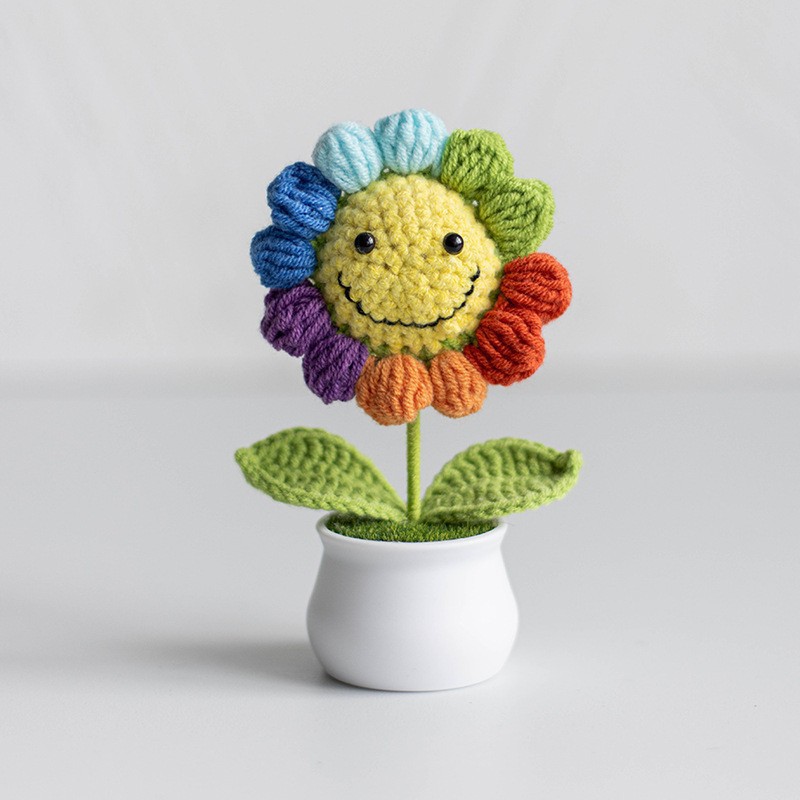 Handgehäkelter Sonnenblumen-topf – Schreibtischdeko Mit Emotionaler Botschaft „alles Gut"