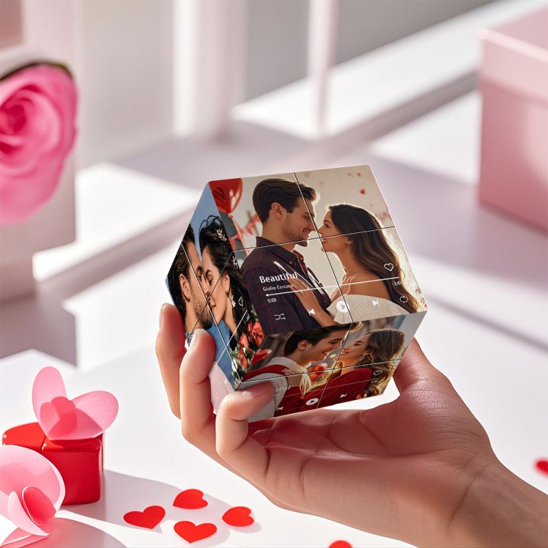 Unendlichkeits-fotowürfel, Benutzerdefiniertes Foto Und Songname, Faltbares Foto, Zauberwürfel Aus Holz, Valentinstagsgeschenke Für Paare