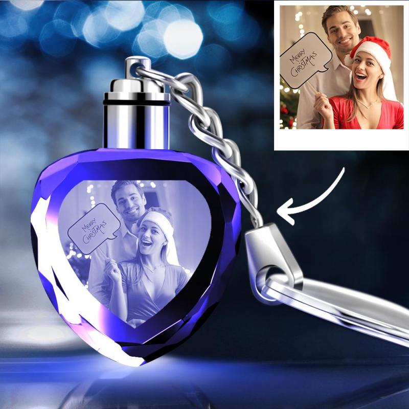 Kundenspezifischer Kristall Herzform Paar Foto Schlüsselkette Für Mädchen Freund