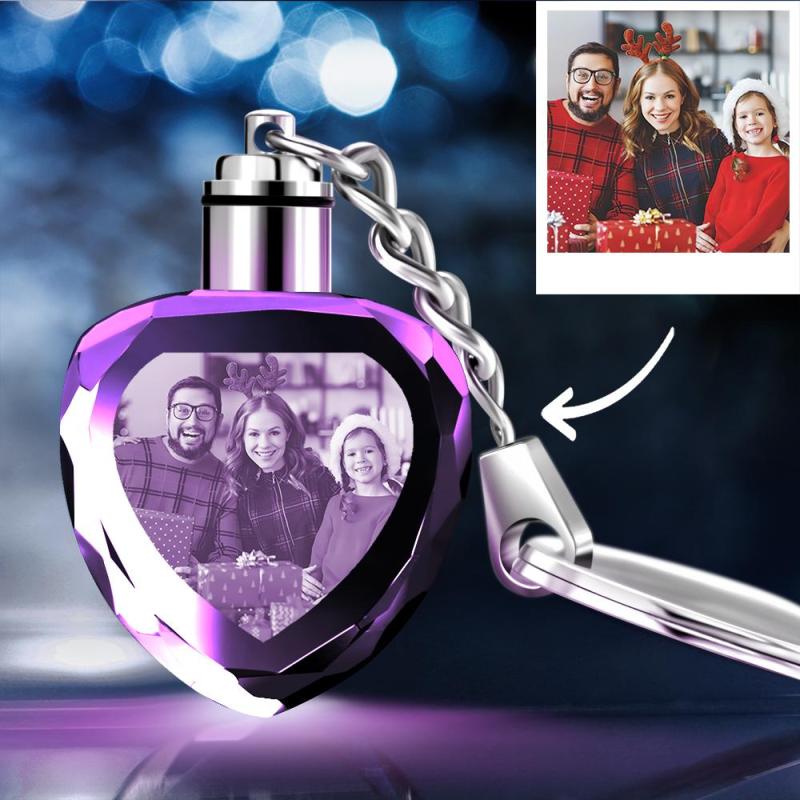 Kundenspezifischer Kristall Herzform Paar Foto Schlüsselkette Geschenk