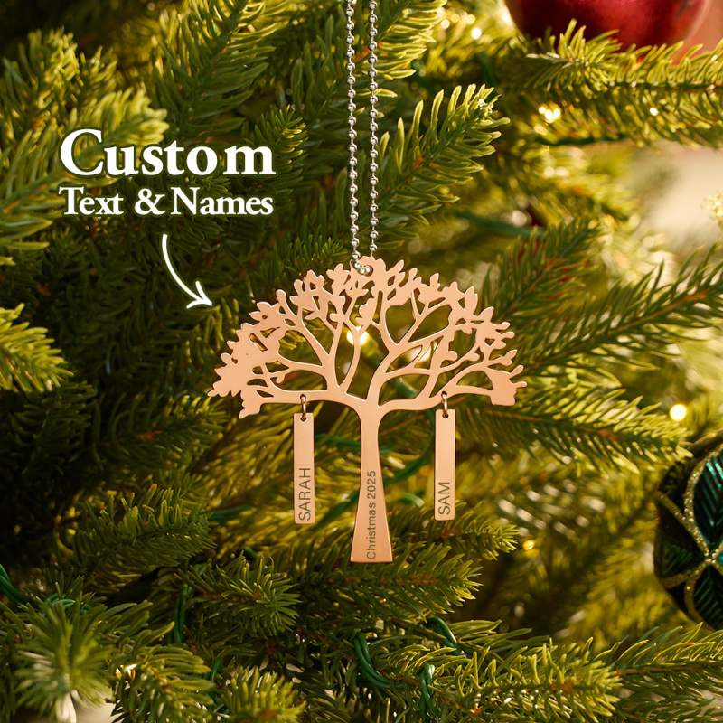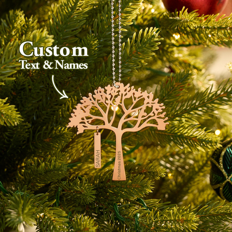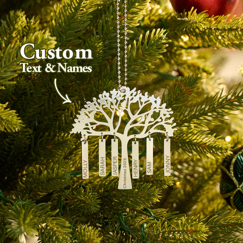 Personalisierter Weihnachtsbaumschmuck Mit Familienstammbaum, Namens- Und Jahresgravur, Metall-hängedekoration, Festliches Familiengeschenk