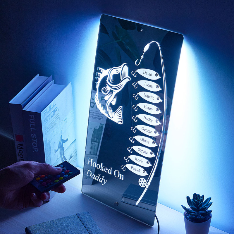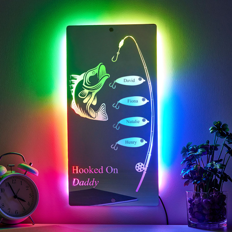 Personalisierter Spiegel Mit Namen Und Aufschrift „hooked On Daddy", Vatertagsgeschenk