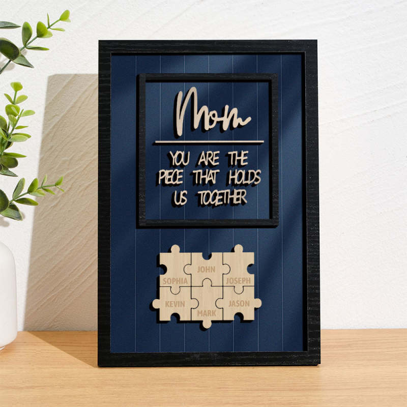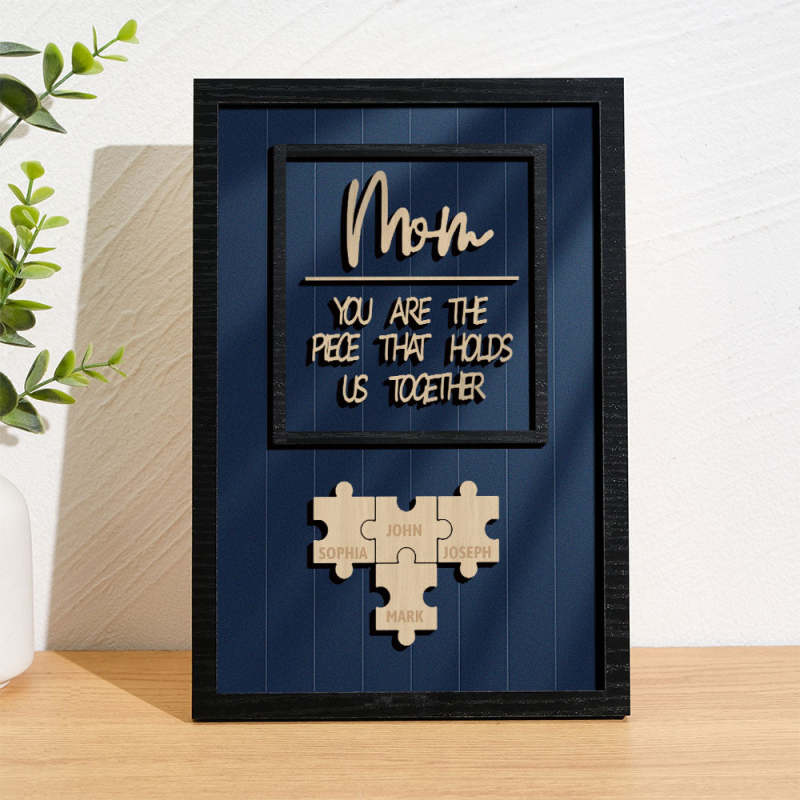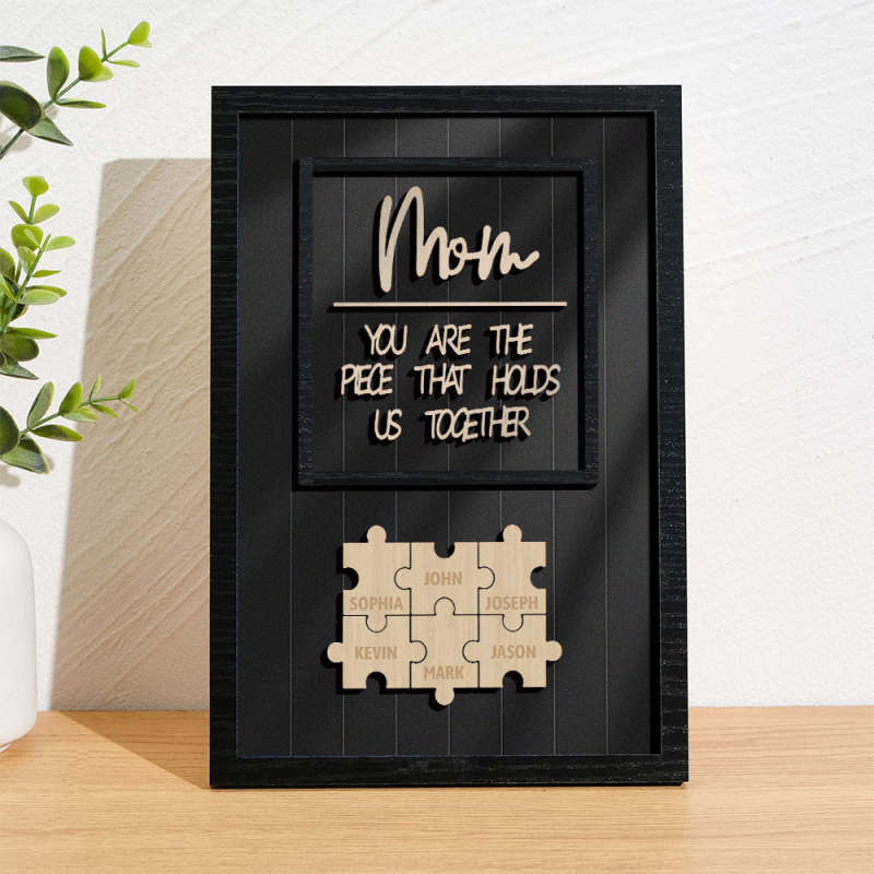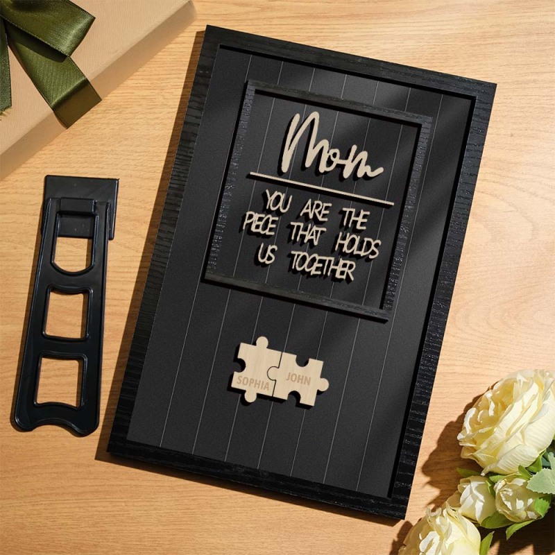 Personalisiertes Namens-mom-puzzle Mit Holzrahmen, Schild „du Bist Das Stück, Das Uns Zusammenhält“.