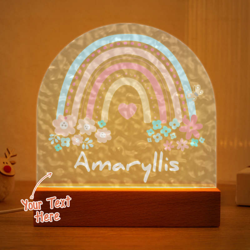 Personalisierte Namenswasser-wellenlampe, Bunter Regenbogen Mit Blumen, Schreibtischdekoration