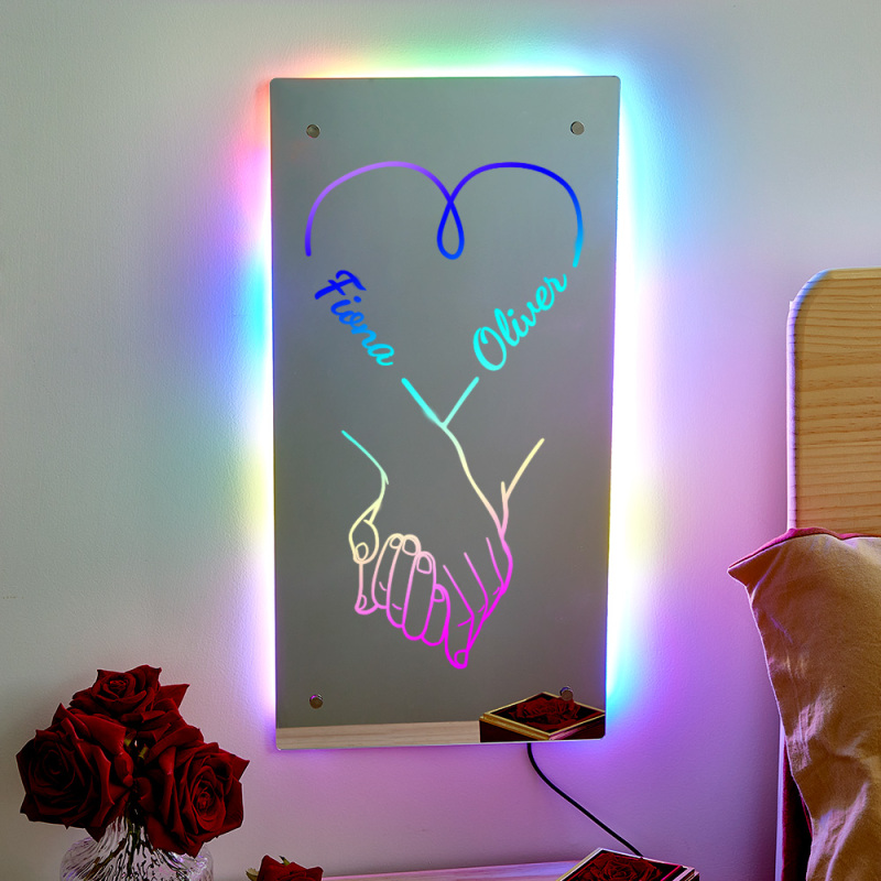 Personalisierte Namen Spiegellicht Benutzerdefinierte Spiegellicht Bunte Schlafzimmerlampe Hochzeitstag Geschenk Für Paare