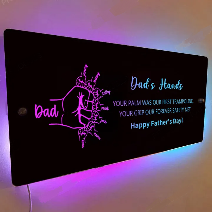 Super Dad's Fist - Personalisiertes Spiegellicht Mit Dem Namen Von Papa Und Kindern