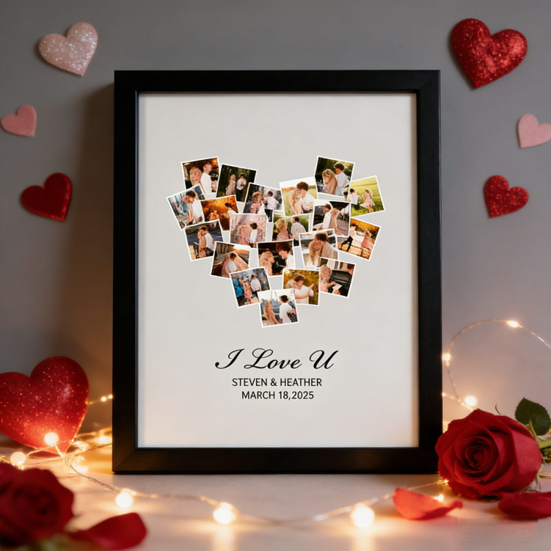 Valentinstagsgeschenk: Personalisierter Bilderrahmen Für 20 Fotos Und Namen – Auch Als Jahrestagsgeschenk Geeignet